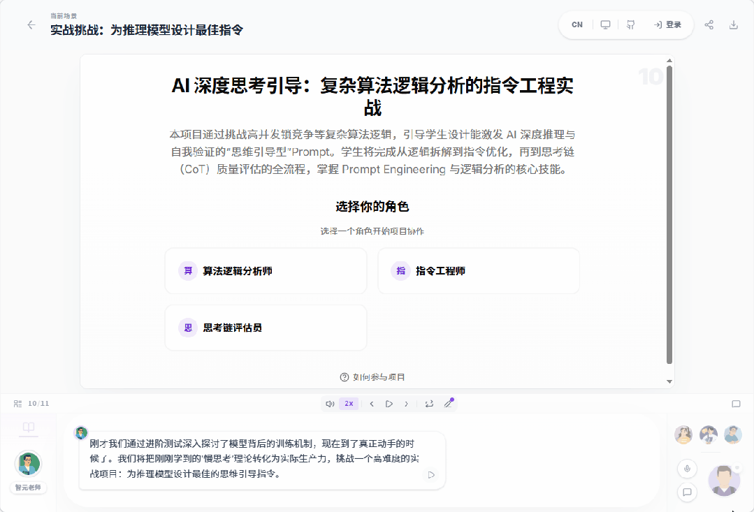 如果你觉得光听不过瘾,还能选择自己的角色进入PBL模式(项目制学习)。通过对话协作来完成一个具体的任务,把硬核知识彻底吃透。
