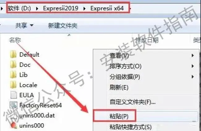 13、将文件粘贴(空白处右键点击弹出框选择【粘贴】)至安装路径(根据步骤7选择,如图)。