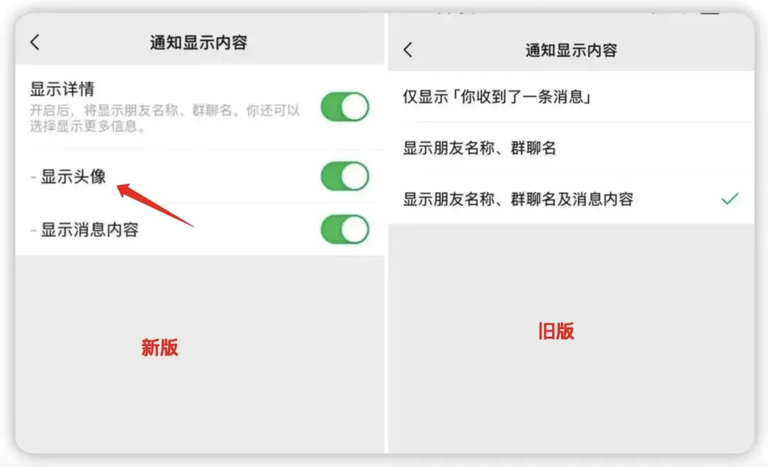 如果需要更直观识别消息来源的小伙伴可以开启头像显示,设置好了,当好友来通知的时候,通过头像就更容易知道谁给你发消息了,的确更方便了。如果有隐私方面的顾虑,也可以保持关闭。