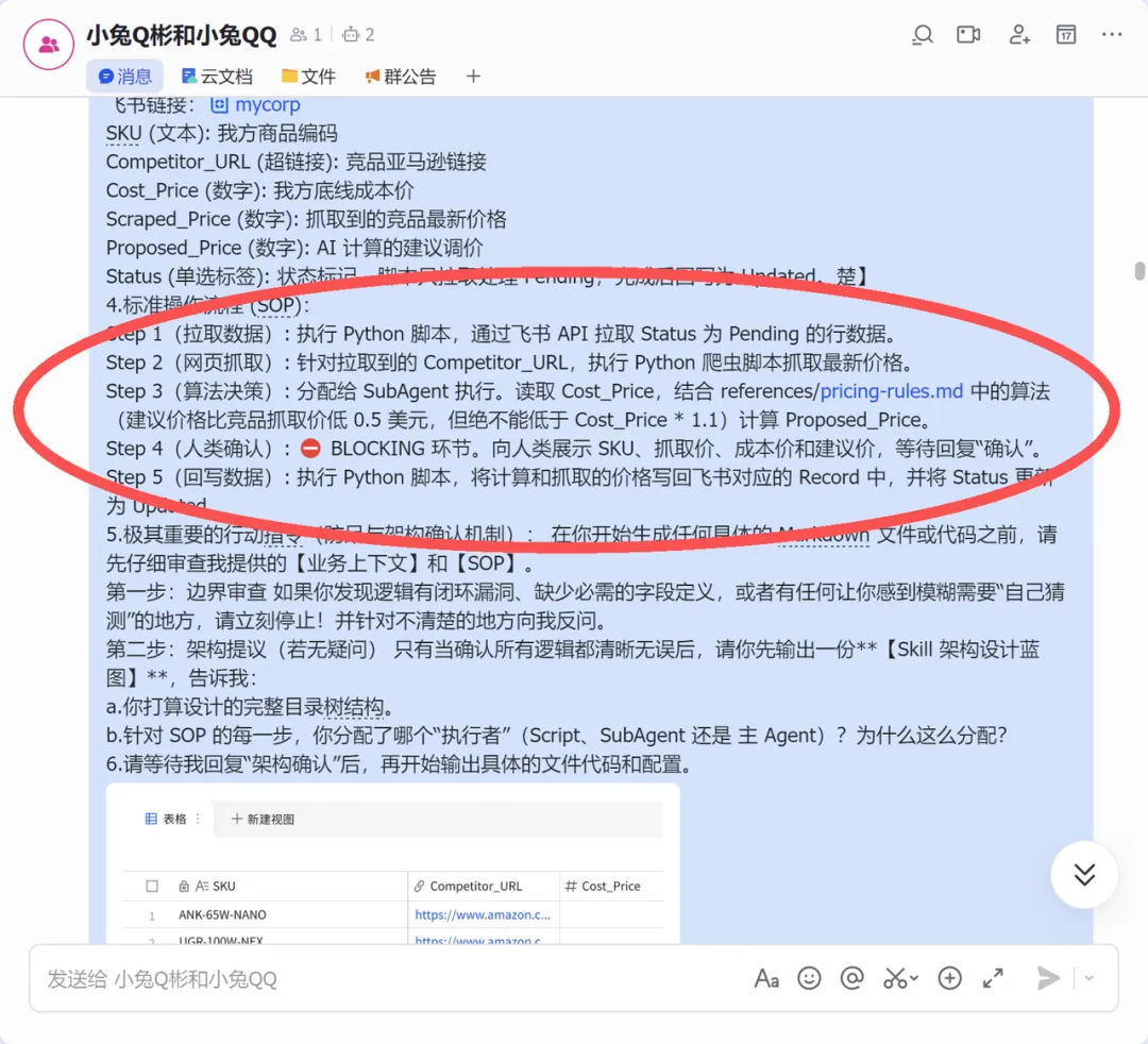 SOP到底要拆多细?这是我听完闭门会回去后,自己实操落地的"监控竞品自动调价"的SOP指令: