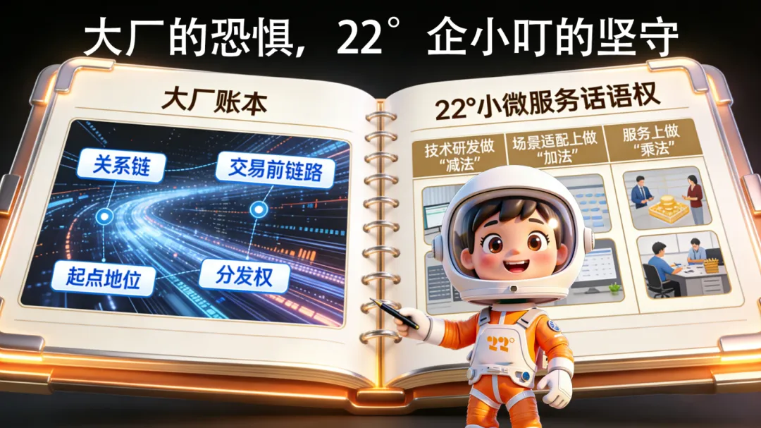 如果打开各家玩家的“核心账本”,会发现大厂们疯狂入局AI智能体赛道的背后,是对失去自身核心优势的深层恐惧;而22°企小叮的布局,核心则是守住并升级对中小微企业的服务能力,筑牢自身垂直领域的护城河,二者虽赛道不同,但均为守护自身核心价值而战。