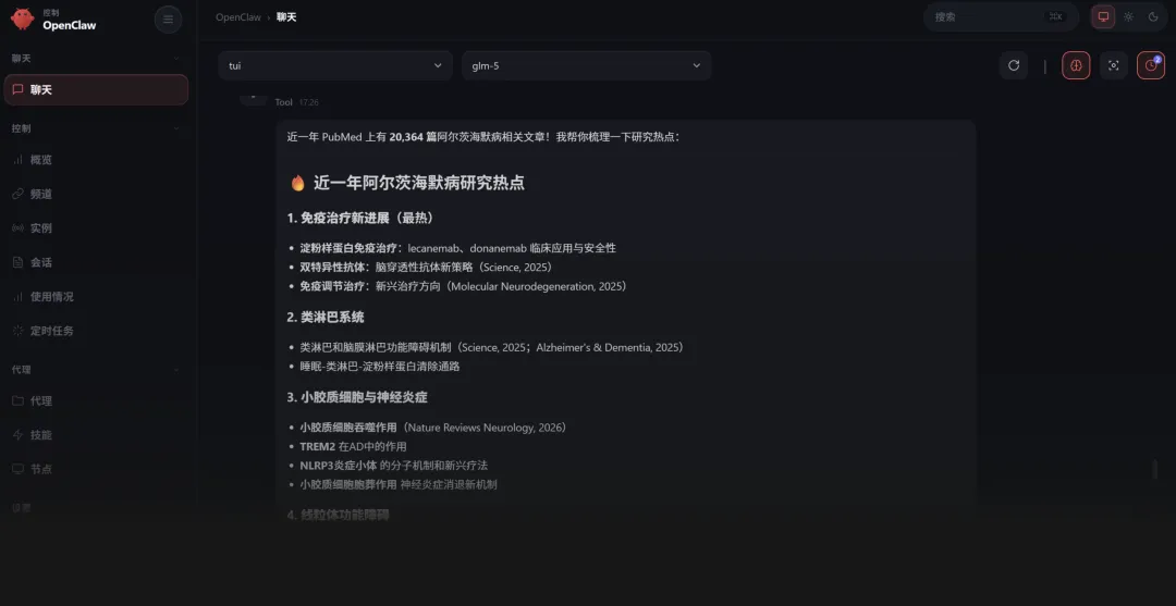 openclaw skills install ncbi-search装完之后,这个技能就成了你助手的一部分。你让它搜文献,它就会调用这个技能。