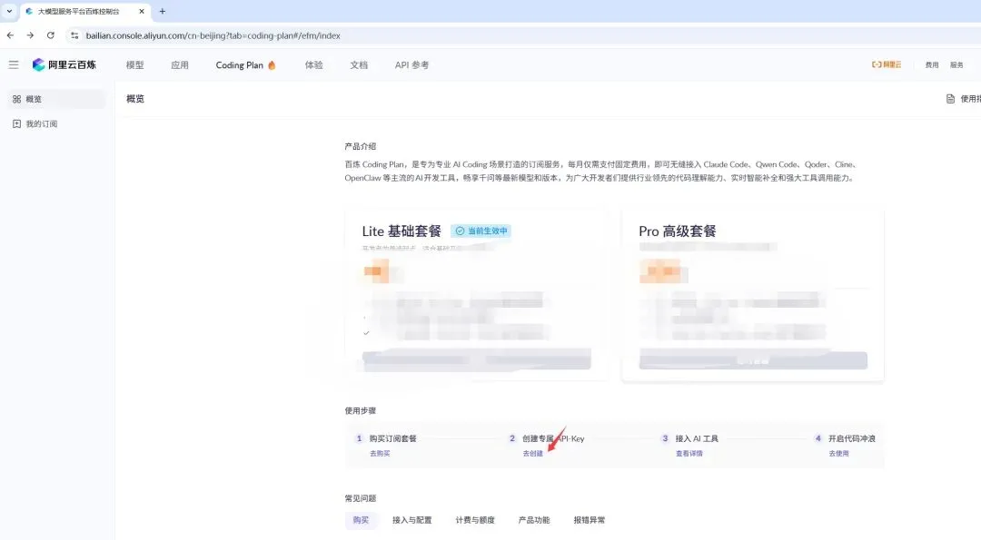 打开浏览器,访问阿里云百炼的Coding Plan页面: