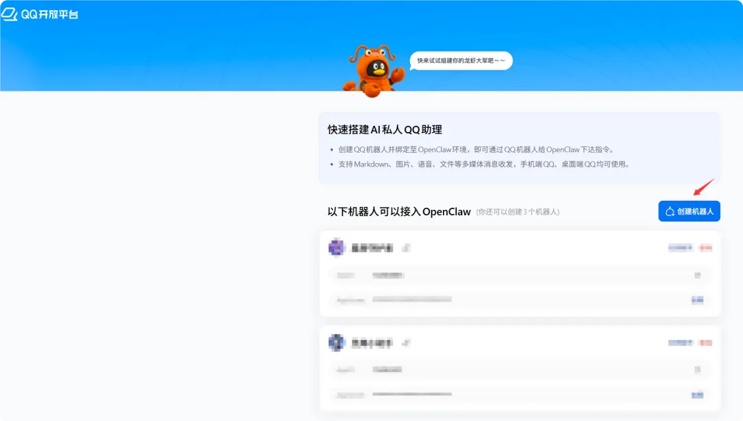 打开创建QQ机器人的页面:https://q.qq.com/qqbot/openclaw/login.html