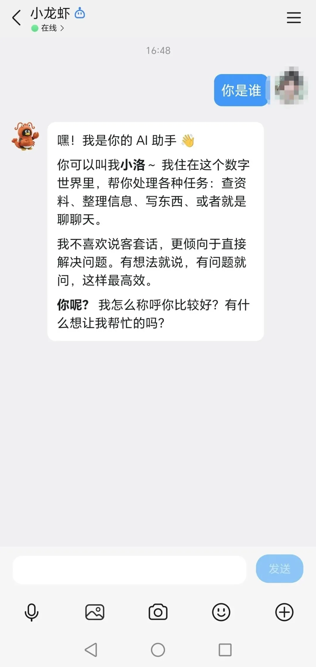 给QQ机器人发消息:“你是谁”