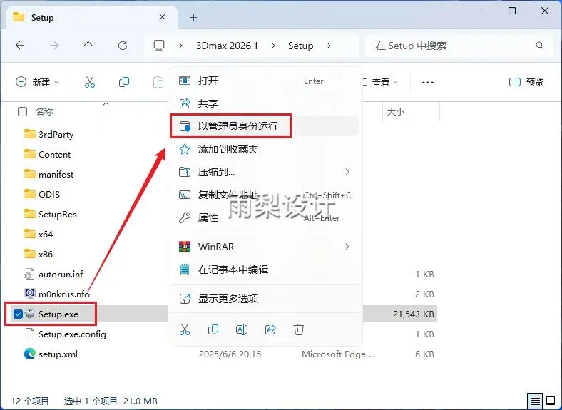 3.右键【Setup.exe】选择【以管理员身份运行】