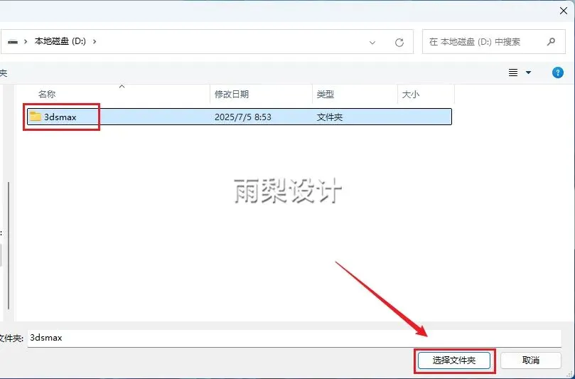 6.选择D盘,在D盘新建一个文件夹(名称不能是中文);点击【选择文件夹】