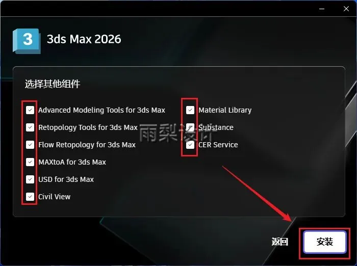 8.点击【安装】(根据需要选择组件)