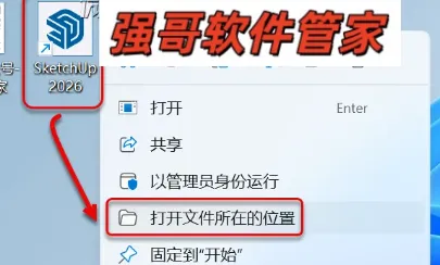 8.桌面【SketchUp2026】图标选择【打开文件所在的位置】