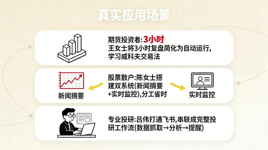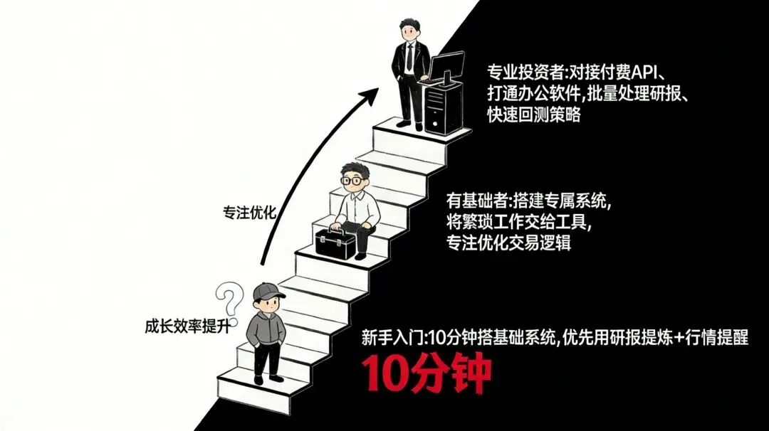 全功能使用需搭配实时行情API和自动化调度,基础搭建简单,新手可操作; 本地部署需简单配置模型环境、调试网络,有基础电脑操作能力更顺手; 部分功能会产生少量Token消耗和接口费; 支持多终端使用,随时随地查看行情; OpenClaw本质是精华Agent版本的ClaudeCode,可学习各类投研skill,门槛略高于通用大模型,但上限更高,定义好分析框架即可执行复杂任务。