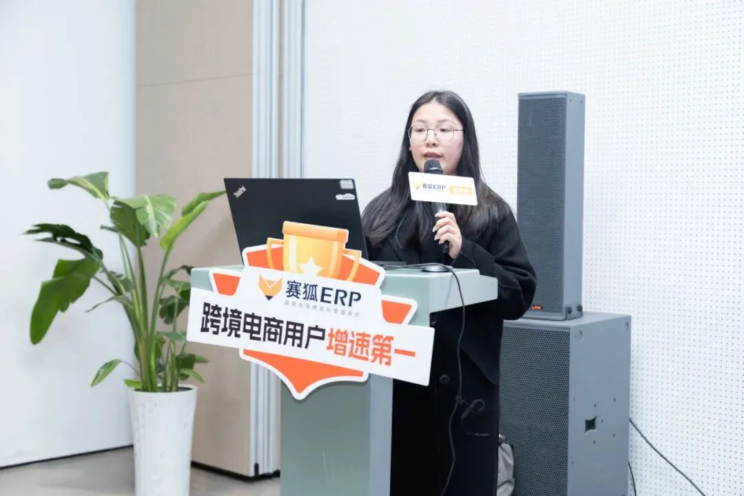 赛狐ERP华东市场负责傅梦玲开场,本次沙龙旨在通过实战分享与深度交流,帮助企业打通 AI 工具落地链路,让技术真正服务于业务增长。