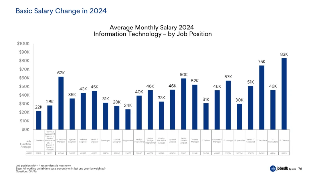 如果留在香港发展,香港IT相关职位薪资高,根据香港Jobsdb发布的2024年香港薪资调查报告看,Information Technology信息科技行业,薪资最低的是IT助理,平均月薪2.17万港币;最高的是IT总监,平均月薪8.31万港币。香港政府和高校提供诸多支持,包括实习计划、创业资助等。
