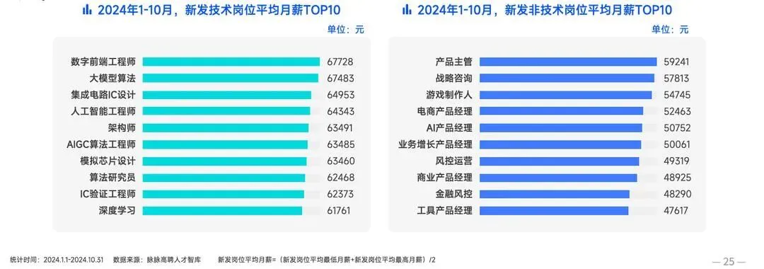 如果在内地发展,AI 岗位需求高,国内巨头持续扩大 AI 岗位招聘,脉脉高聘发布《2024年度人才迁徙报告》显示,2024 年 TOP20 热招岗位中有 5 个与 AI 相关 ,平均月薪也是5万起。