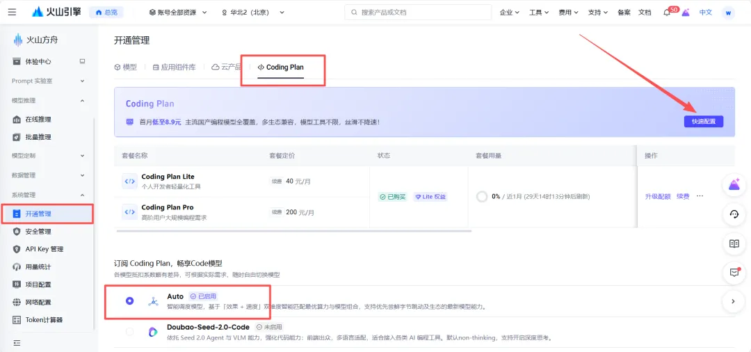 当然这个是否使用火山取决个人,国产模型有很多,比如:智谱、阿里百炼、华为云都有提供给openclaw专属的Coding Plan。