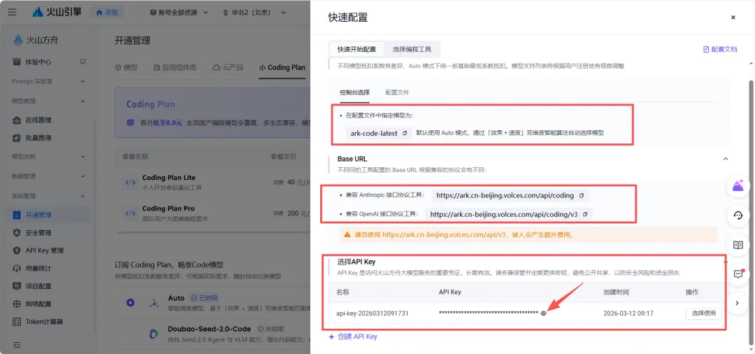 火山控制台 https://console.volcengine.com/