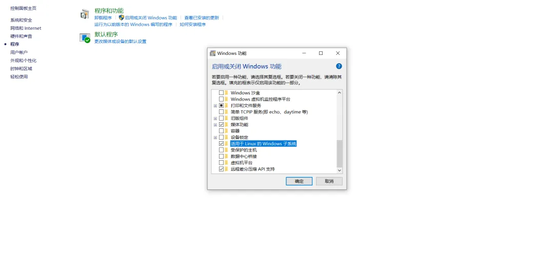 勾选:Hyperi-V; 适用于Linux的 Windows 子系统;Windows虚拟机监控程序平台,点击确定后等待系统更新并重启电脑