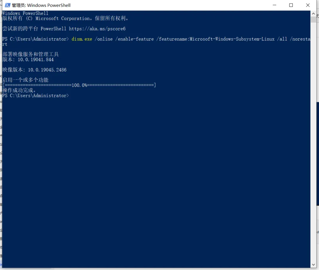 dism.exe /online /enable-feature /featurename:Microsoft-Windows-Subsystem-Linux /all /norestart
