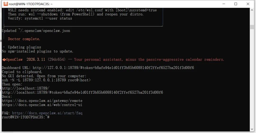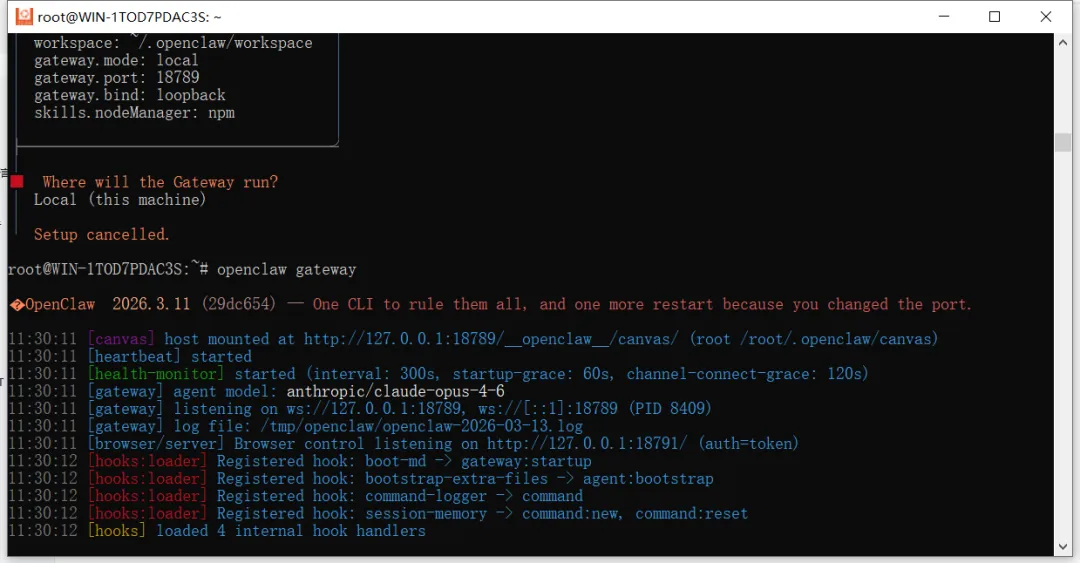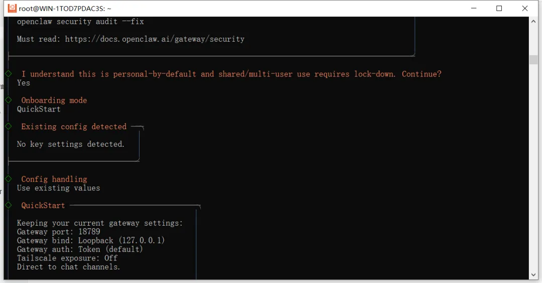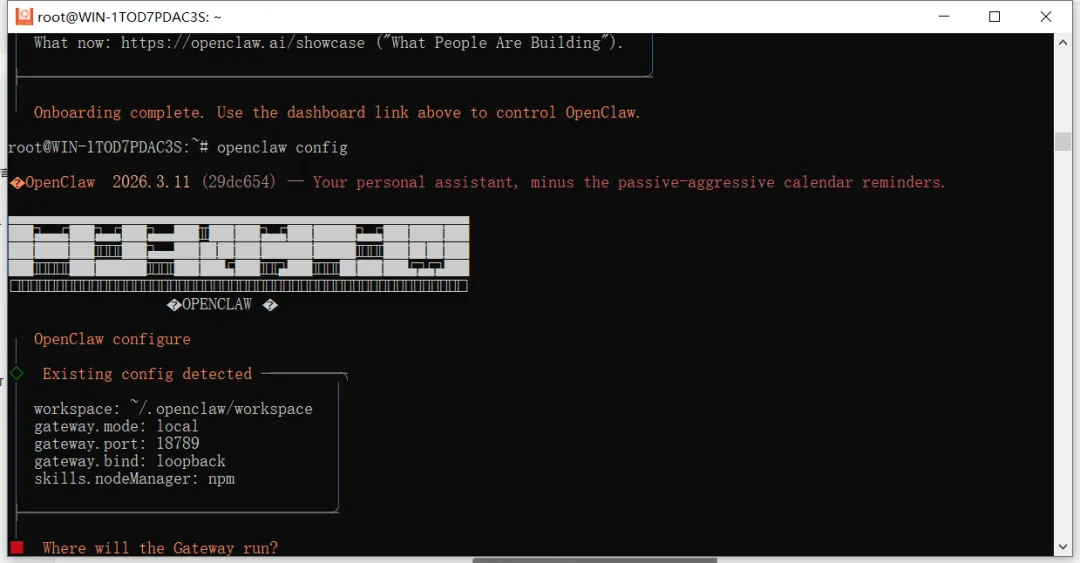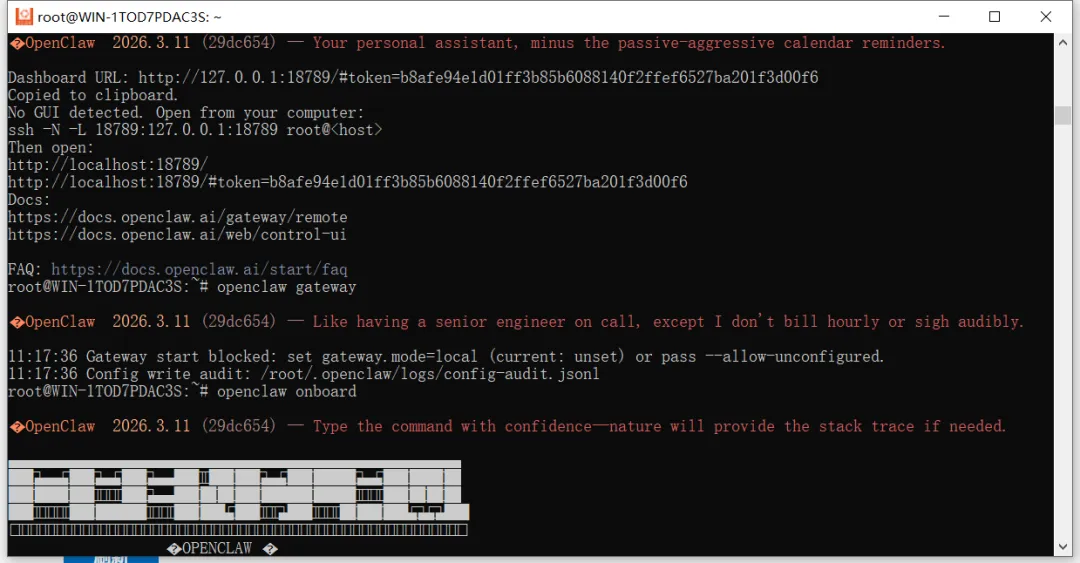 完成后,使用下面的启动命令启动Openclaw
