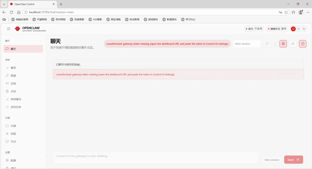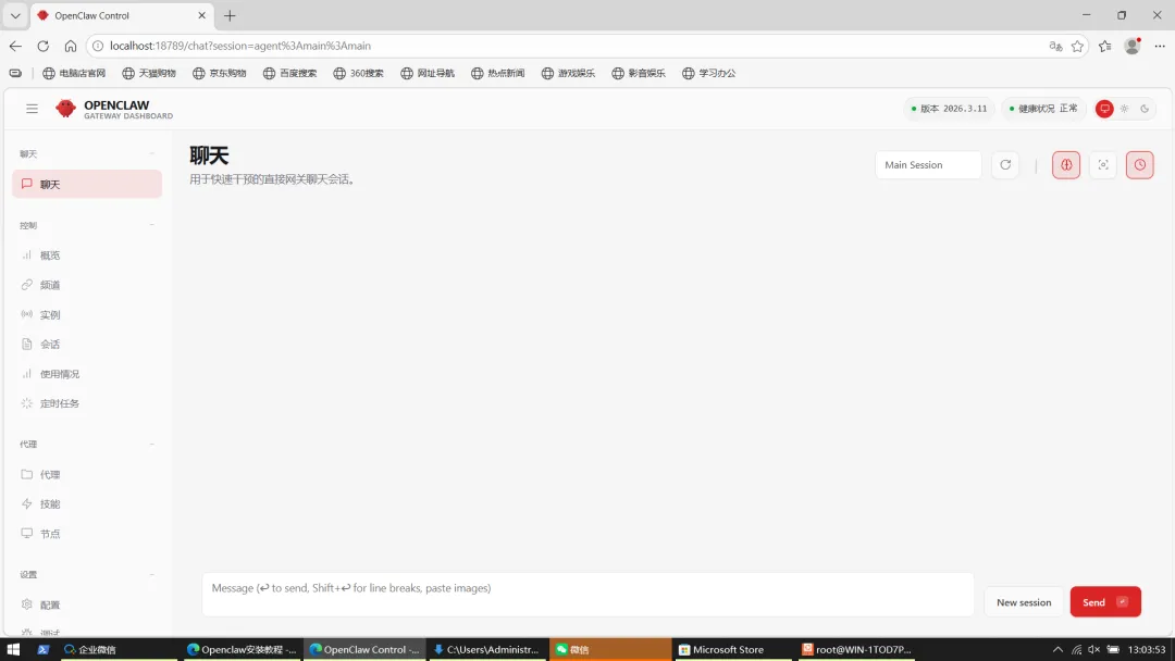 启动后打开http://localhost:18789/chat?session=agent%3Amain%3Amain