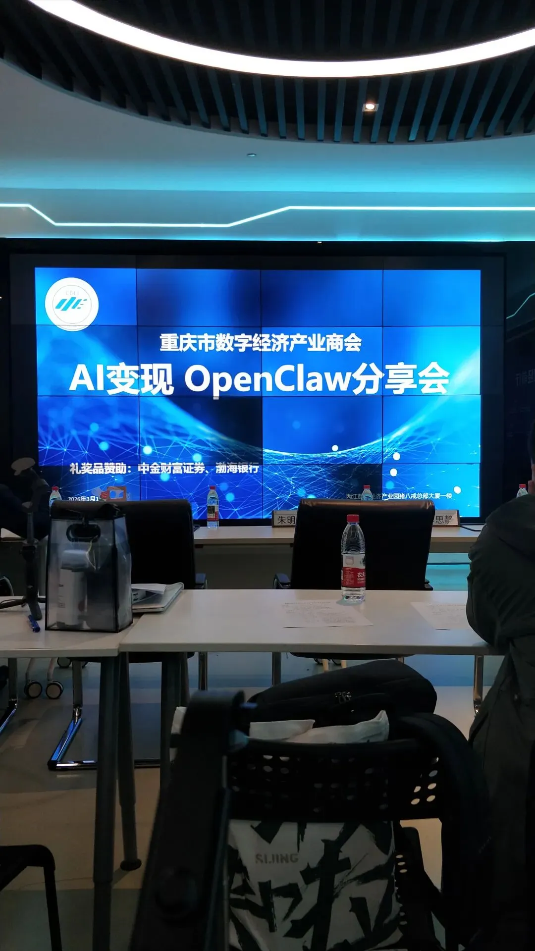 就在昨日(2026年3月16日),在母亲的陪同下,我们(以企业名义)去参加了重庆市数字经济产业商会(参会地点:两江数字经济产业园猪八戒总部大厦一楼)举办的《AI变现OpenClaw分享会》。