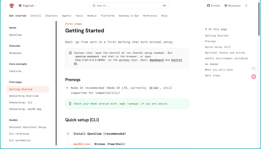 如果你折腾过 OpenClaw,就会知道它的魅力和门槛几乎是同时出现的。魅力在于它真的是 Agent,不只是聊天;门槛在于你要先理解安装、模型、渠道、权限、运行环境,甚至还得接受“先踩坑,再用起来”这件事,别的不说,光看这个英文文档我就头疼: