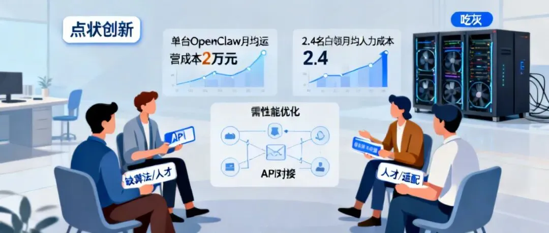 郭御风委员分析,人工智能在千行百业的渗透仍以“点状创新”为主,缺乏能够重塑生产流程、革新商业模式或显著改善民生的“杀手锏”级规模化应用。高性能GPU租赁费高企,成了创新团队最大的成本项。据机构测算,单台OpenClaw月均运营成本约2万元,相当于2.4名白领的月均人力成本。
