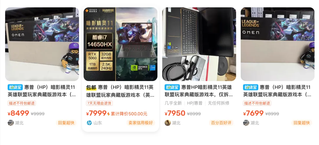 在价格方面这款配置了i7-14650HX、RTX5060以及32G大内存的机型,目前在结合相关补贴后的参考价格约为7900元左右,在当前存储元件普涨的大环境下,能以这个价位拿下一线大厂的满配机型性价比确实已经突显出来,然后我顺带差了一下二手价格发现二手和新机都差不多