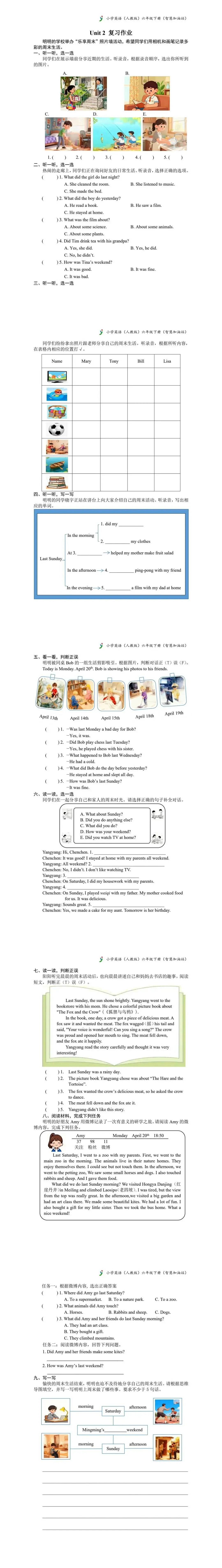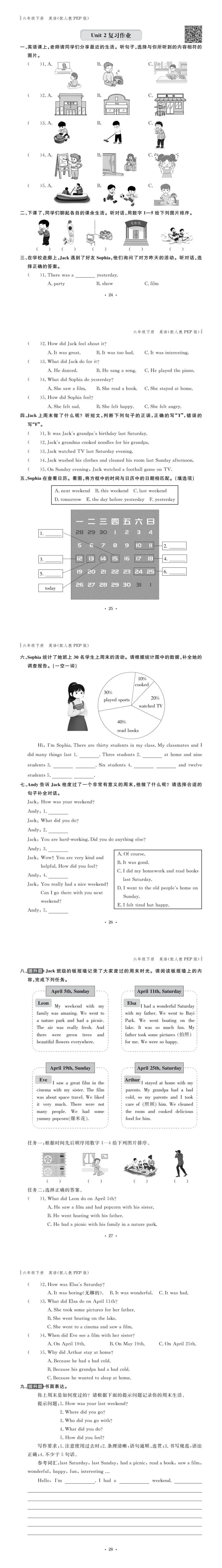 PEP人教版六年级英语下册提升性作业
