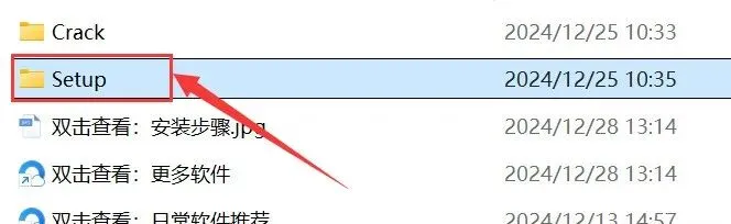 2.打开解压后的文件夹,双击打开【Setup】文件夹。