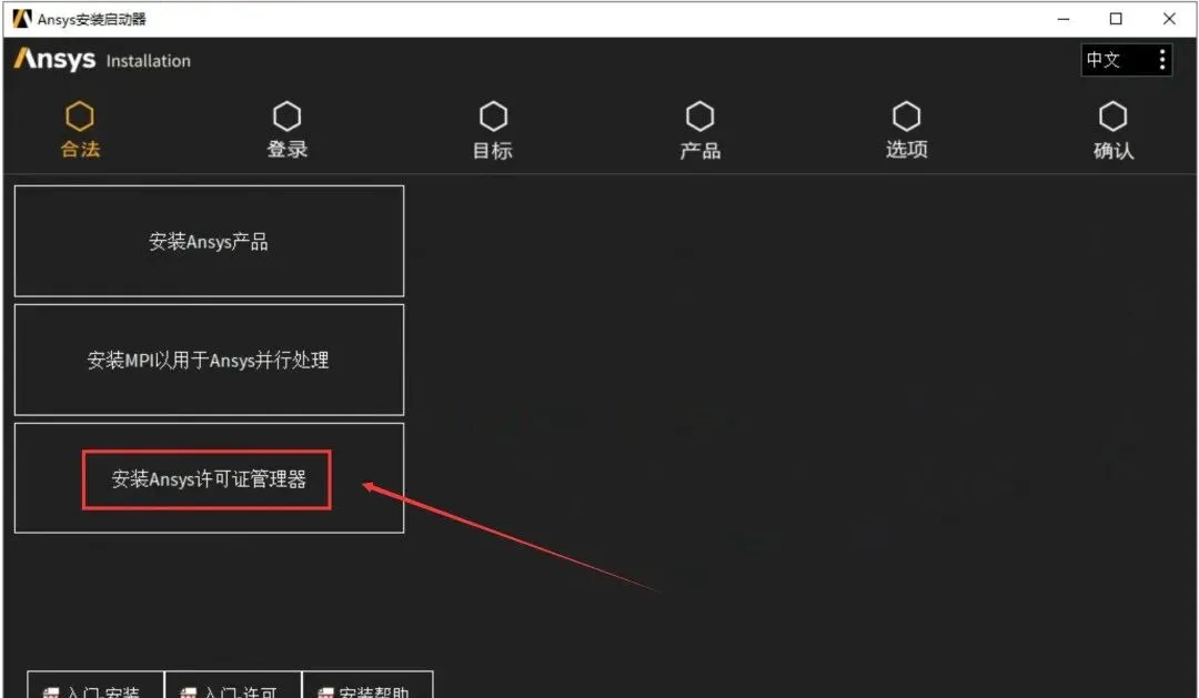 5.点击【安装 Ansys许可证管理器】。