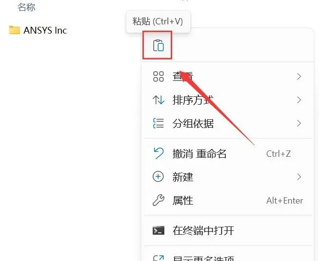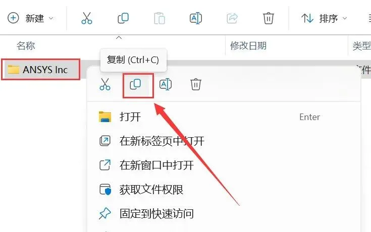 74.鼠标右击【ANSYS Inc】选择【复制】。
