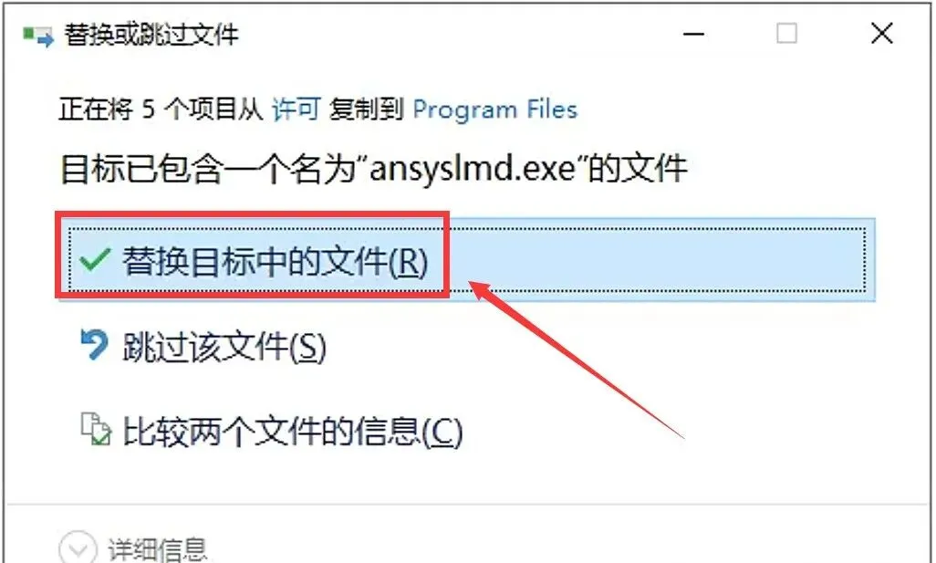 16.点击【替换目标中的文件】。