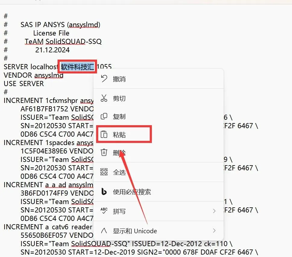 20.选中文档中的"软件科技汇"鼠标右击选择【粘贴】。