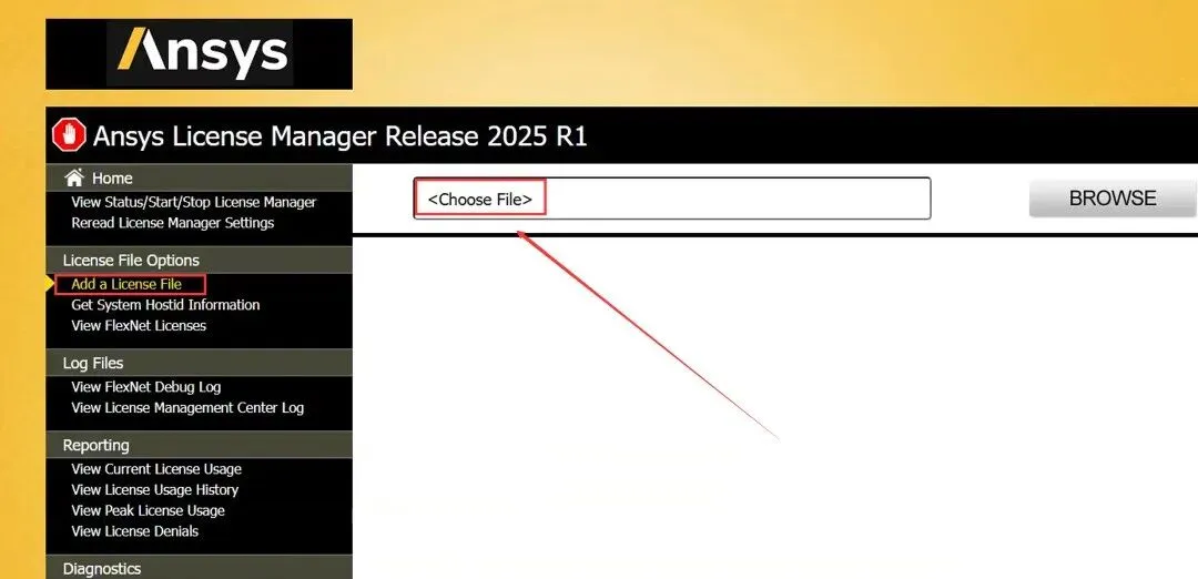 22.回到步骤18所在页面,点击【Add a License File】,点击【Choose File】。