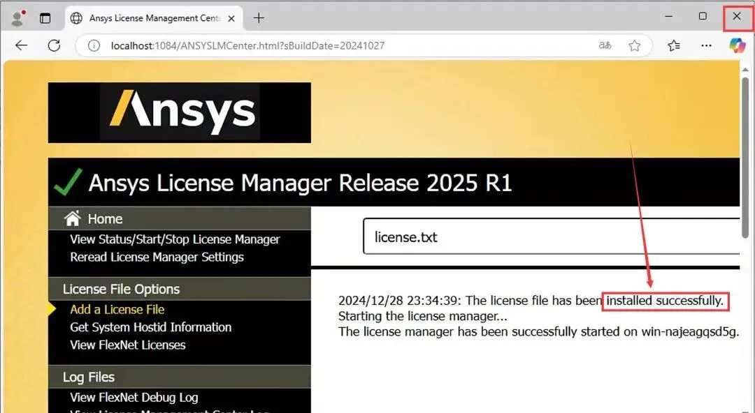 25.当提示”……installed successfully“,点击左上角【X】退出。