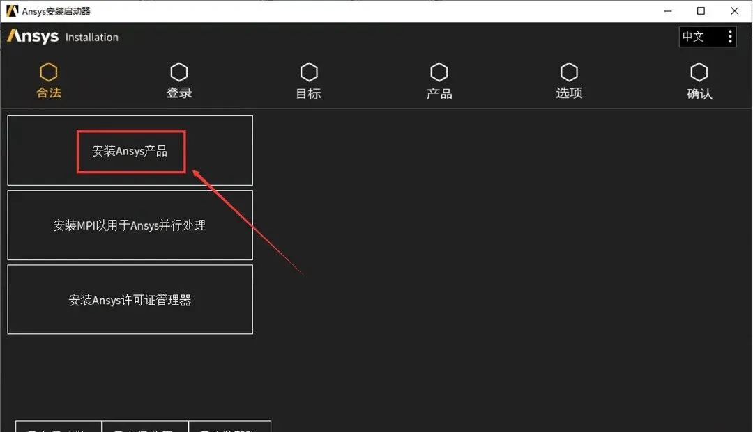 28.点击【安装Ansys产品】。