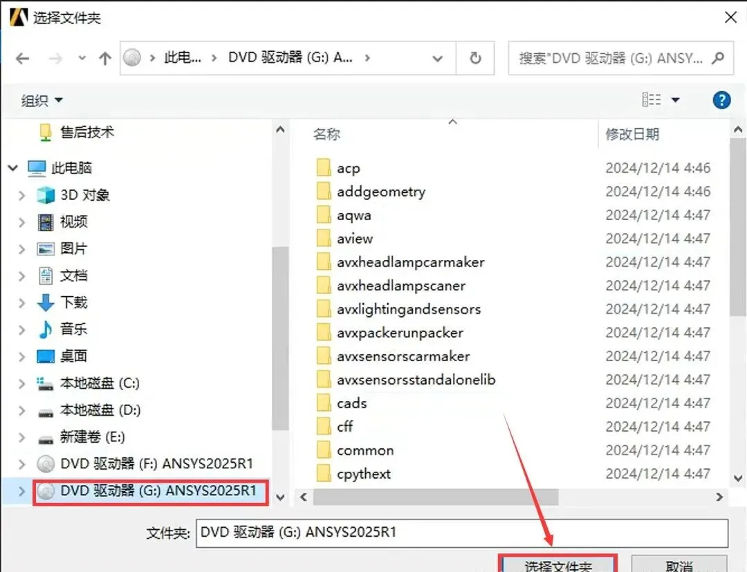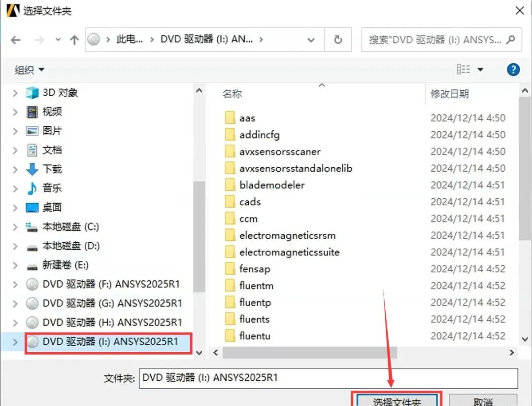 45.打开安装包解压后的【ANSYS2025 R1(64bit)】文件夹中【Setup】文件夹,鼠标右击【DISK3】选择【装载】(注意留意装置后的磁盘符,在步骤47将会选择SIDK3装载的磁盘,不同用户这里装置之后磁盘符可能不一致)。