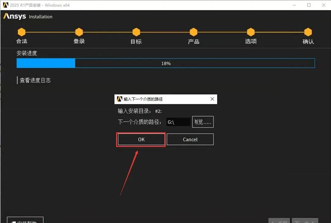 42.当安装进度到18%时,点击【览..】。
