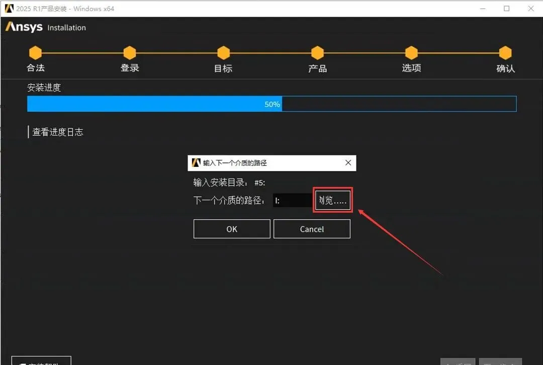 54.当安装进度到50%时,点击【浏览..】。
