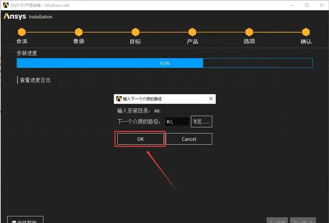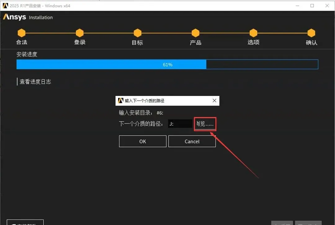 58.当安装进度到61%时,点击【浏览..】。