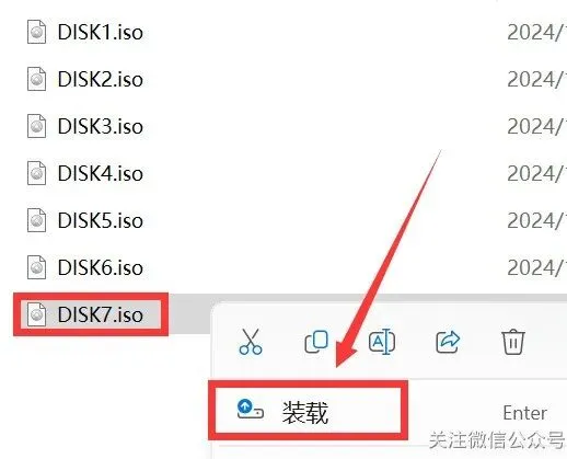 61.打开安装包解压后的【ANSYS2025 R1(64bit)】文件夹中【Setup】文件夹,鼠标右击【DISK7】选择【装载】(注意留意装置后的磁盘符,在步骤63将会选择SIDK7装载的磁盘,不同用户这里装置之后磁盘符可能不一致)。