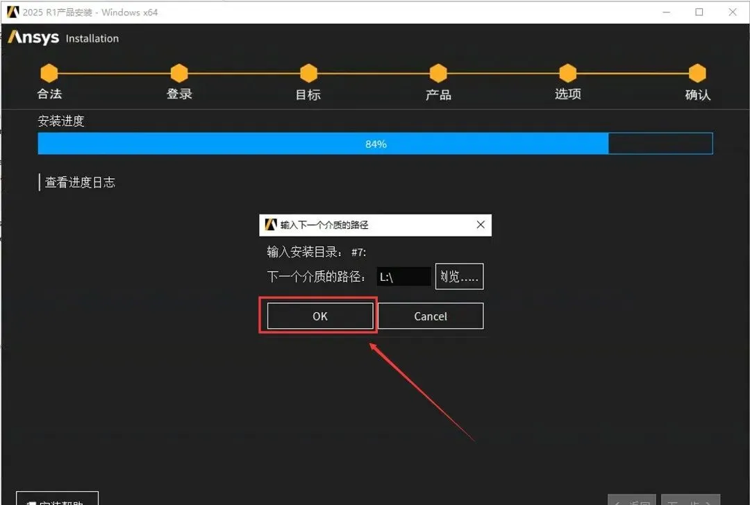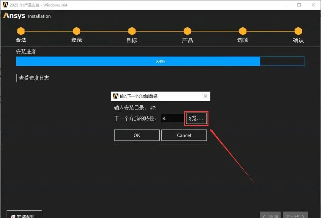 62.当安装进度到84%时,点击【览..】。