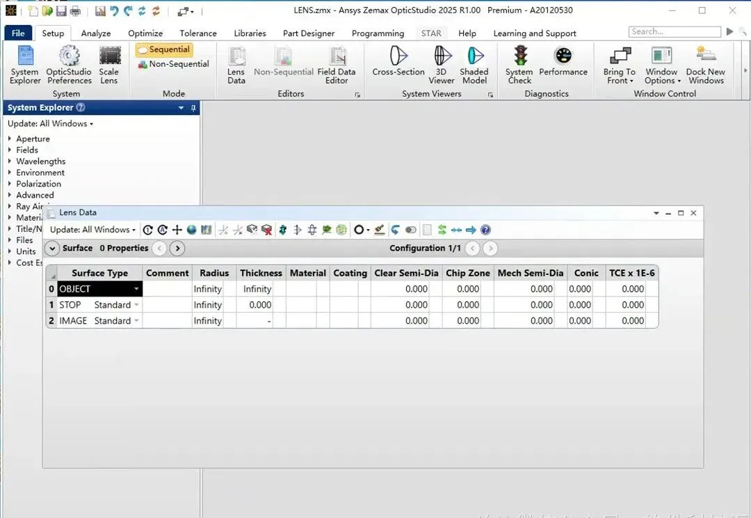 Zemax打开界面如下: