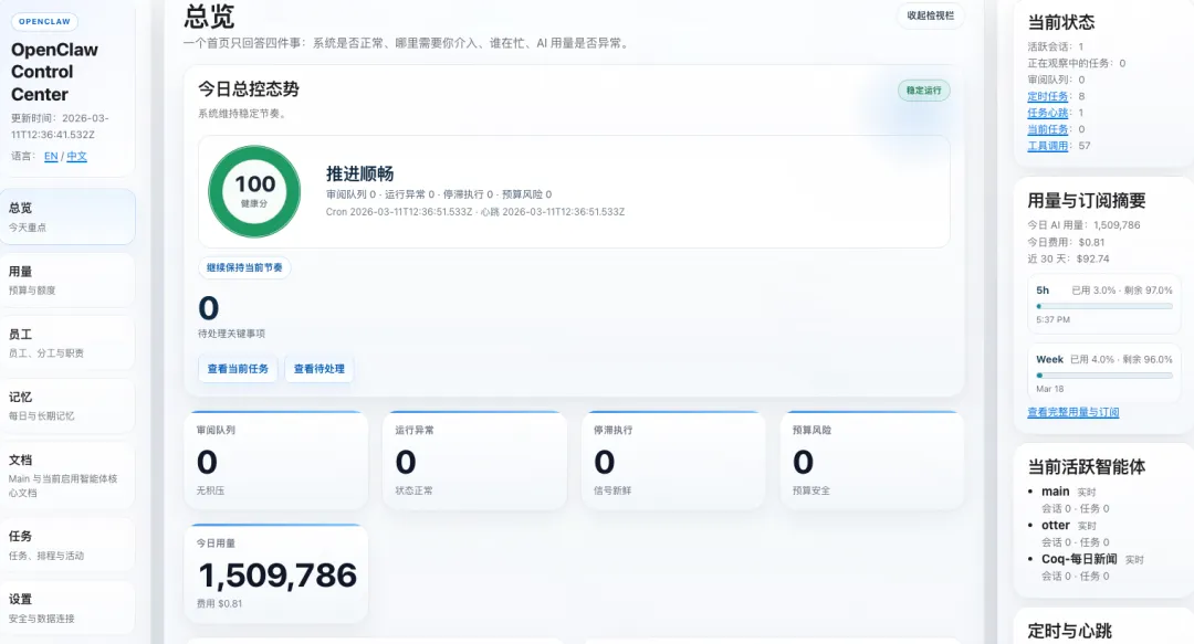 OpenClaw Control Center 解决了 AI 团队管理的"信息过载"问题。它不是简单地把原始数据搬到 UI 上,而是做了大量"翻译"工作: