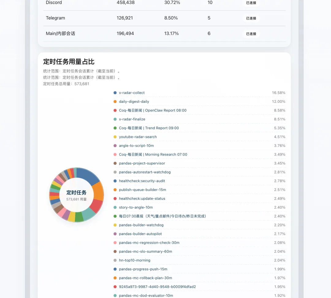 应用场景:月初想控制预算?打开用量页一看就知道哪个 agent 是"吞金兽"。