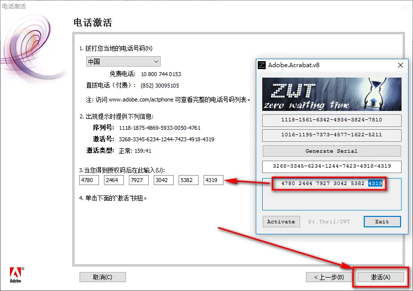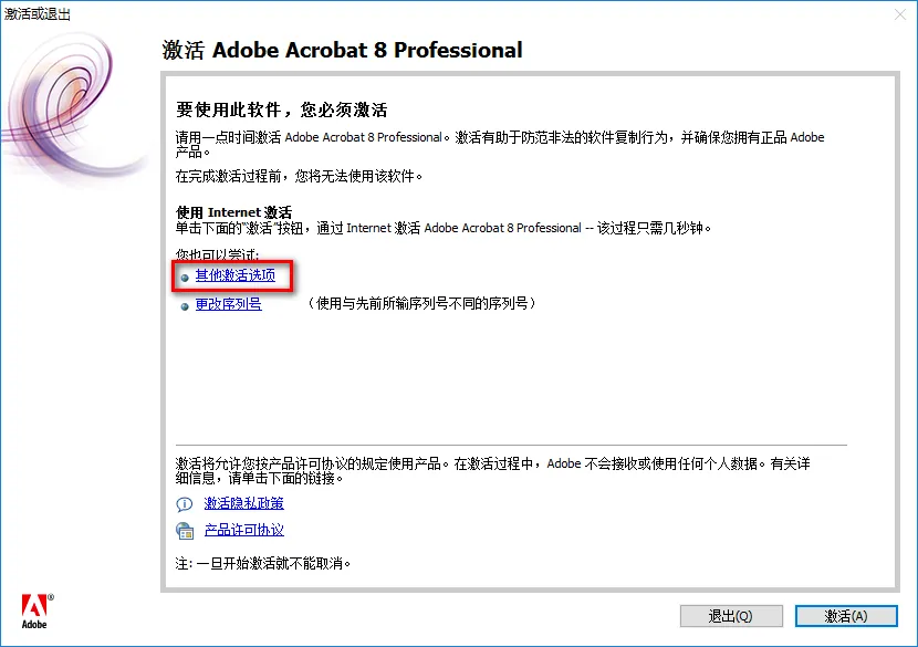 6.选中注册机,鼠标右键点击“以管理员身份运行” ![]() 7.点击“Generate Serial” ![]() 8.将第一行数字复制到序号对话框内,用户名与单位随便填,点击“下一步” ![]() 9.选择验证原版序列号,点击“下一步” 10.将第二行数字复制到序列号对话框内,点击“Next” ![]() 11.点击“下一步” ![]() 12.选择“自定义”,点击“下一步” ![]() 13.取消勾选缓存安装程序文件,点击“下一步” ![]() 14.选择软件的安装路径,点击“下一步” ![]() 15.点击“安装” 16.软件正在安装,请耐心等待 ![]() 17.在软件安装过程中,如果出现如下图所示的情况,点击“取消” ![]() 18.点击“完成” 19.点击“否” ![]() 20.双击桌面图标,运行软件 ![]() 21.点击“接受” ![]() 22.选择“其他激活选项” 23.选择通过电话,点击“确定” ![]() 24.将激活号复制到注册机中,点击“Activate” ![]() 25.将生成好的数字复制到授权码对话框内(不能一次性复制,需要一组一组的复制),点击“激活” ![]() 26.点击“完成” ![]() 27.点击“不注册” ![]() 28.安装结束