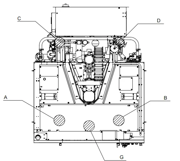 安装人员应在机器底座的中前部使用千斤顶。