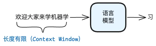 上面有一点需要注意:语言模型的输入(或输出)的长度是有限的,这个上限称为 Context Window :