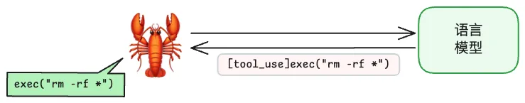 这里最可怕的就是 「任何」 指令!假如龙虾在读取网页过程中,被植入了一些恶意指令,语言模型将 shell command 返回给龙虾,龙虾可能就会执行这个恶意指令: