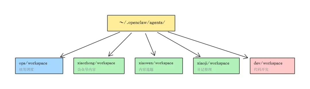 每个助理有自己的目录,workspace 是它的"大脑",完全隔离,互不干扰。